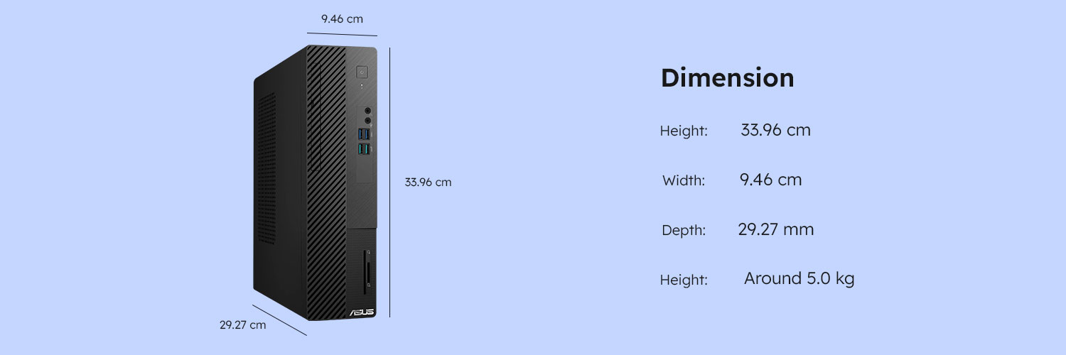 Chiếc PC Asus S500SE Tower được thiết kế với kiểu dáng nhỏ gọn, khung máy bền bĩ và khả năng tối ưu hóa năng lượng với hệ thống tản nhiệt hiện đại, cho phép bạn sử dụng thiết bị lâu dài mà không sợ nóng máy. Màu sắc thân máy hiện đại, dễ vệ sinh, kích thước vừa vặn linh hoạt cho bạn dễ dàng thay đổi vị trí góc làm việc khi cần.