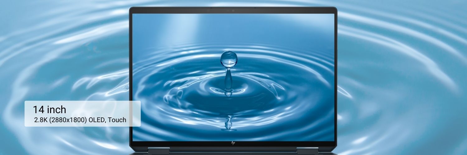 Chiếc HP Spectre x360 14 được trang bị một màn hình OLED 14 siêu nhỏ, tuy vậy mức viền Micro Edge cho vùng nhìn rộng mở và thông thoáng. Độ phân giải 2.8K (2880x1800) cực sắc nét cho màu sắc rực rỡ và cực kỳ sống động, khả năng cảm ứng đi kèm bút chạm thông minh cho phép bạn thao tác trực tiếp trên bề mặt máy tính. Bản lề có thể xoay gập 360 giúp bạn linh hoạt sử dụng máy ở nhiều tư thế, thỏa sức sáng tạo theo phong cách của bạn.