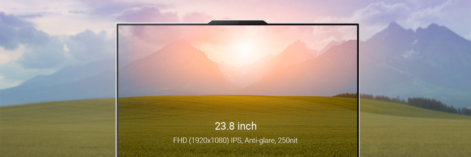 • Display: 23.8″ FHD (1920×1080) IPS Anti-glare 250nits, 100Hz, 99% sRGB, hardware low blue light, 3-side borderless, non-touch